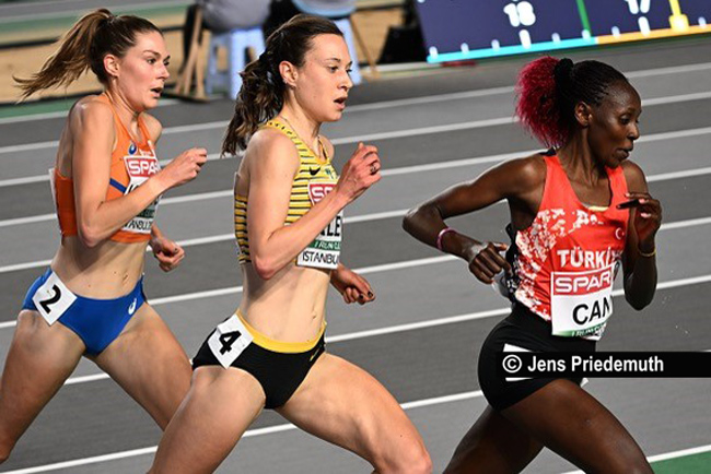 Dahinter qualifizierten sich unter anderem die Olympia-Siebte über 5.000 Meter Nadia Battocletti (Italien; 8:59,65 min), Maureen Koster (Niederlande; 9:00,33 min) und die Bronzemedaillengewinnerin von 2019 Melissa Courtney-Bryant (Großbritannien; 9:00,40 min) ebenfalls souverän für den Endlauf. In 9:01,34 Minuten rettete Can, der auf der Schlussrunde die Puste ausging, nach einem Stolperer Rang sechs und damit ebenfalls das große Q ins Ziel.