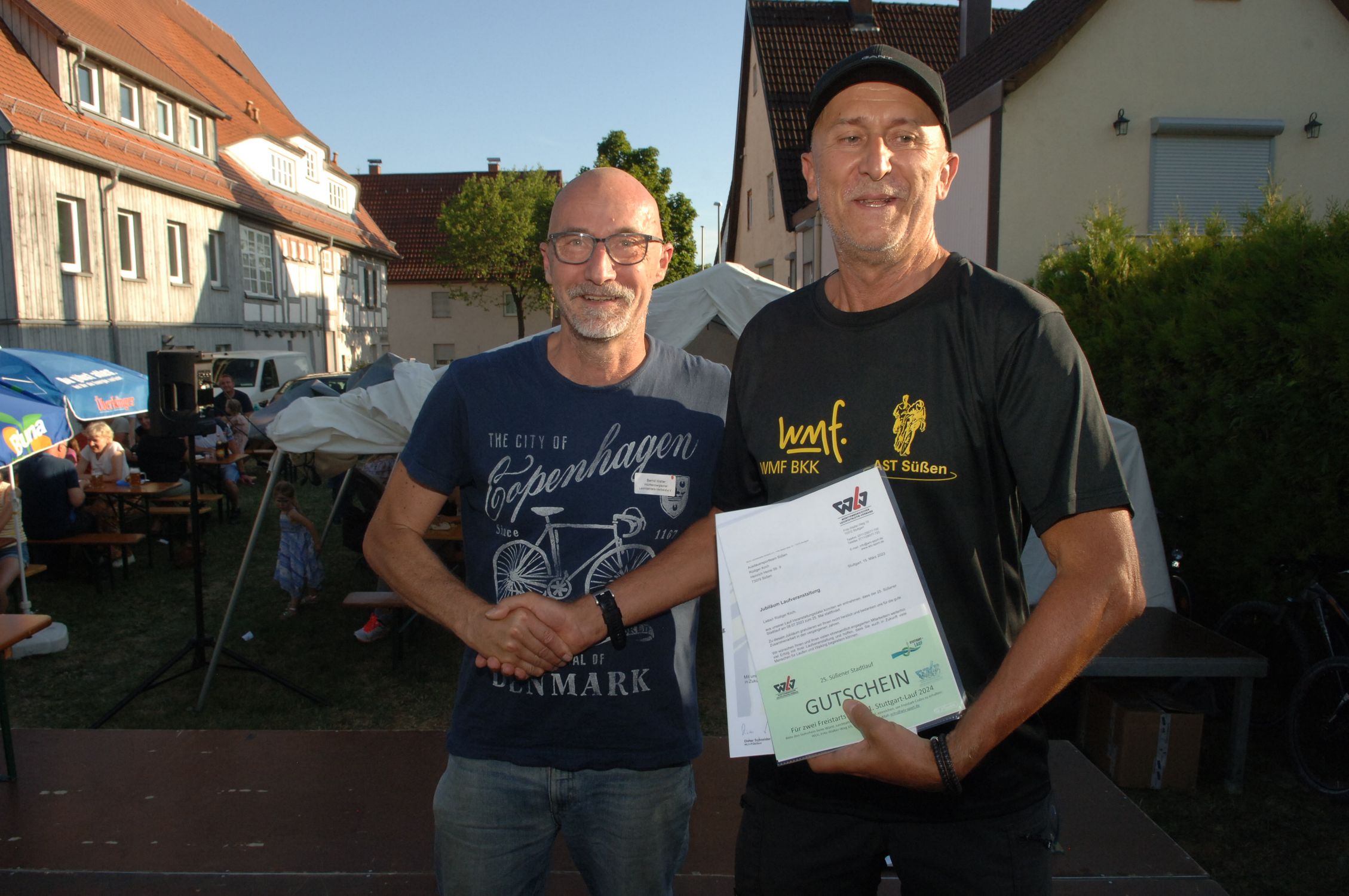 Im Rahmen der Siegerehrung überbrachte Bernd Walter als Vertreter des WLV-Fachausschusses Freizeit-, Lauf- und Gesundheitssport die Glückwünsche des Verbandes und überreichte Rüdiger Koch vom AST Süßen Urkunde nebst Präsent.