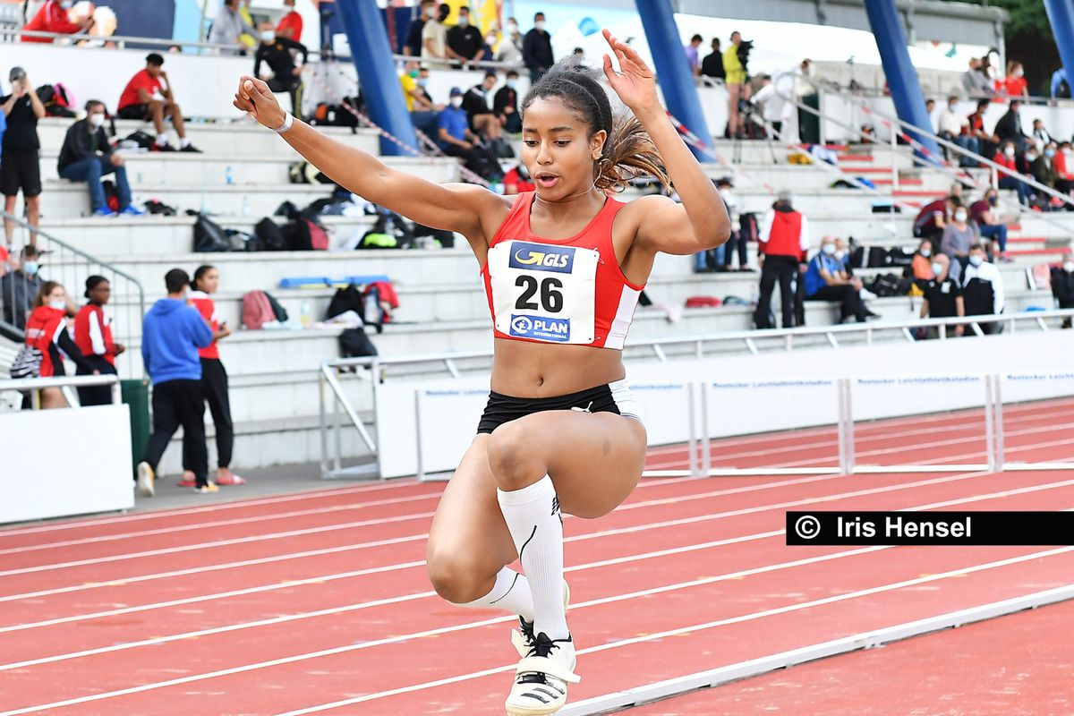 Mikaelle Assani (LG Region Karlsruhe) setzte im Weitsprung-Wettbewerb der U20 ihr erfolgreiches Jahr fort. Bei der U20-EM vor zwei Wochen hatte sie Bronze gewonnen, in Rostock wurde es auf nationaler Ebene nun Gold. Zwar blieb sie unter ihrer Weltjahresbestleistung von 6,64 Metern, doch mit 6,54 Meter im ersten Versuch setzte sie eine Weite in den Sand, die im internationalen Vergleich erneut ein Ausrufezeichen ist. Nur vier Springerinnen, einschließlich ihr selbst, sind weltweit in diesem Jahr weiter gesprungen. Im vierten Versuch konnte sie mit 6,50 Meter ein zweites Mal eine Fünf hinter das Komma bringen.