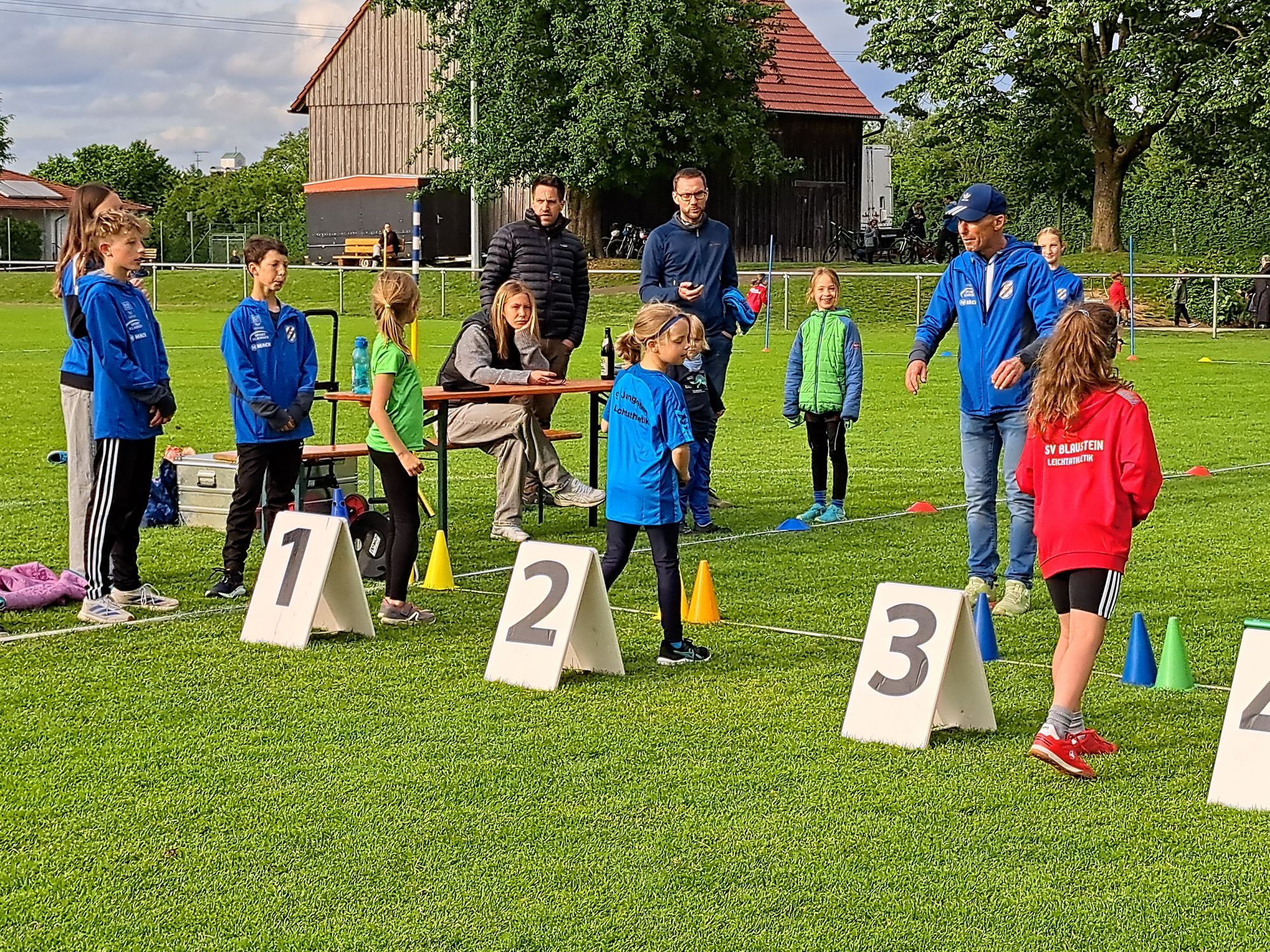 Sowohl in Ehingen als auch in Jungingen zeigte sich das Wetter von seiner gnädigen Seite, so dass mit gut durchdachtem Stationenaufbau jeweils schon nach knapp zwei Stunden die 180 bzw. 250 Kinder mit ihrem Wettkampf durch waren und mit ihren Eltern zufrieden den Wettkampfort verließen. Neben den Sprints und einer Rundenstaffel auf dem Rasen standen in Ehingen der Scherhochsprung bzw. die Weitsprungstaffel sowie Drehwürfe auf dem Programm, in Jungingen die Mehrfachsprünge und Würfe mit dem Heulerball.
