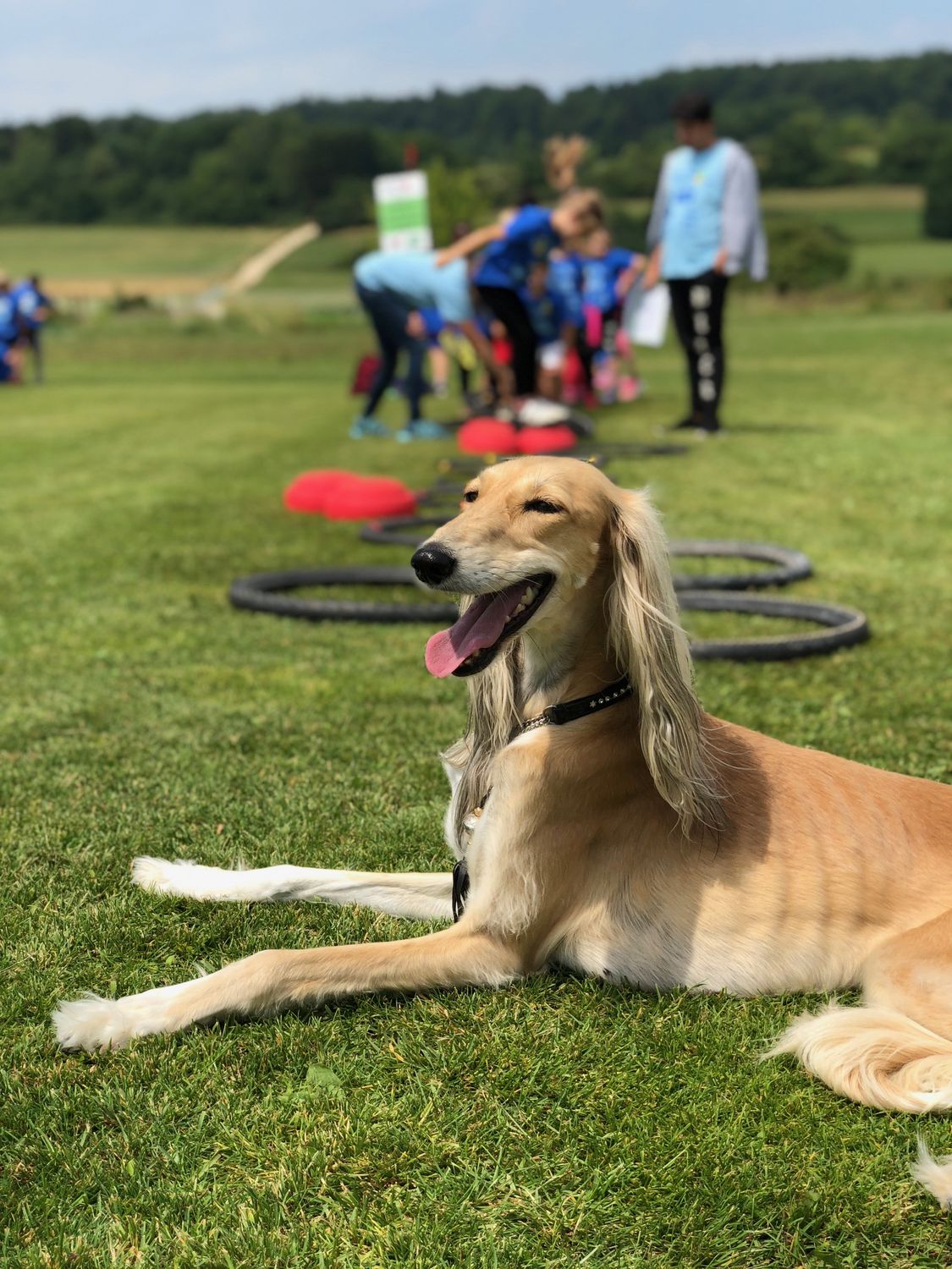 Eine Station, die sogar dem Hund einer Helferin besonders gut gefallen hat, war "Wir bewegen uns laufend, hüpfend und springend". Der Hund war nicht im Cabrio zu halten und stieg mehrere Male aus, um selbst den Parcours aus Fahrradreifen und bunten Stapelsteine von joboo zu durchlaufen, aber natürlich auch, um sich einige Streicheleinheiten abzuholen.