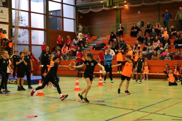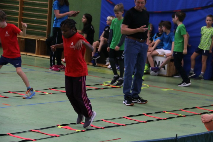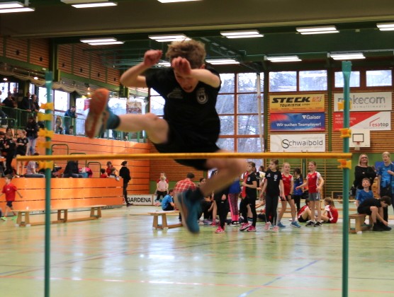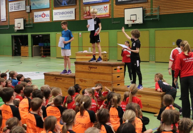 Die TSV-Verantwortlichen um Gabi Grasser und Antje Kotzan hatten neben den Lichtschrankensprints mit und ohne Hürden lauter Disziplinen aufgeboten, die im bisherigen Verlauf des Winters noch nicht dran waren. Hochweitsprung für die „Großen“ mit Sprüngen bis 1,20 m Höhe und Zonenweitsprung für die „Kleinen“, verschiedene Schnelligkeitesparcours an der Motorik-Leiter sowie das diffiziele Werfen mit einem Haushaltsschwamm standen auf dem Programm. Zusammen mit den Staffeln wieder ein sehr herausfordernder Nachmittag, der nach gut zweieinhalb Stunden in die Siegerehrung mündete, die Urkunden und Süßigkeiten für alle vorsah, aber auch die besten Drei auf dem großen Podest ehrte.
